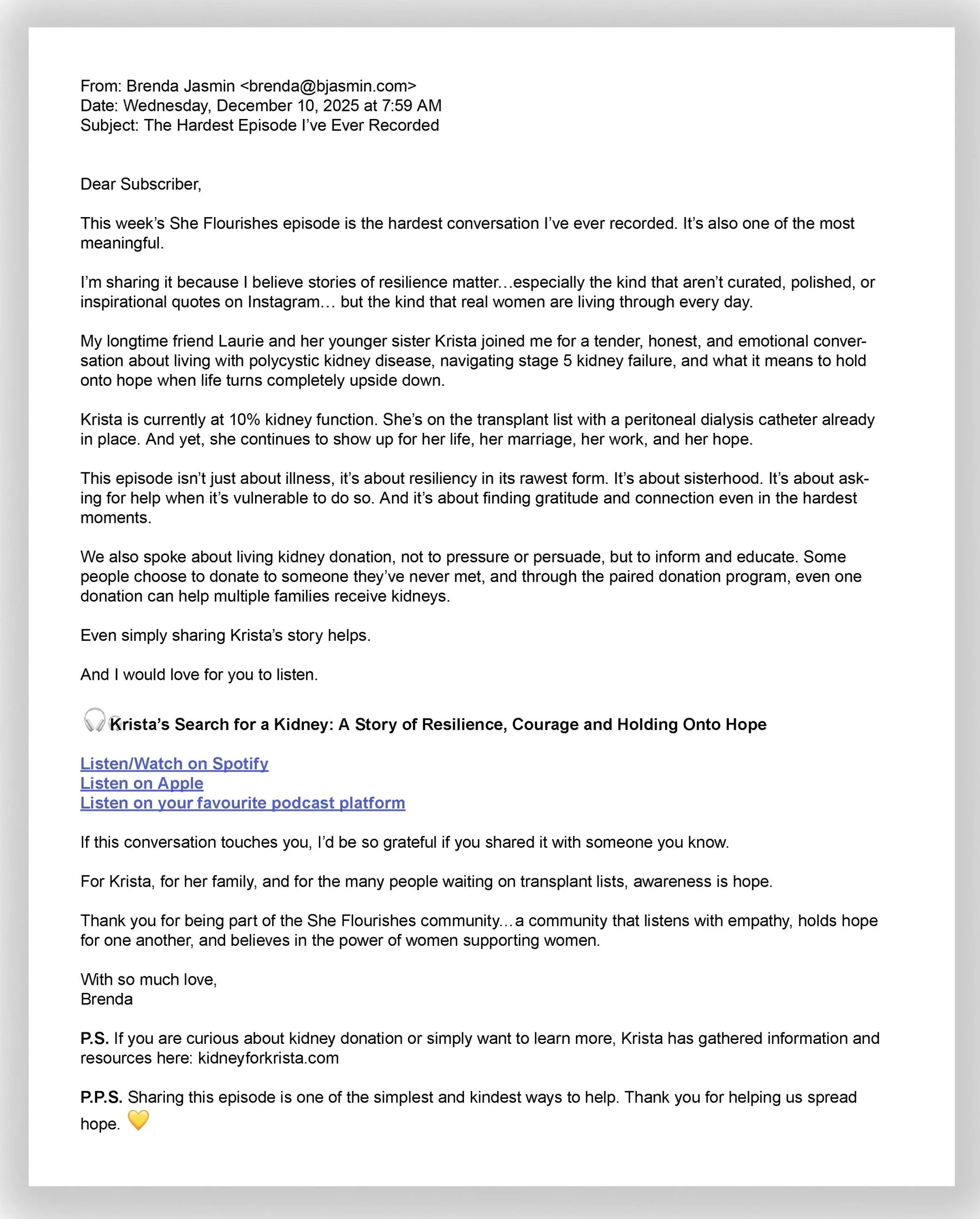 I was also really touched by Brenda’s words in the email she shared with her subscribers, so I wanted to share it with you as well (see below).